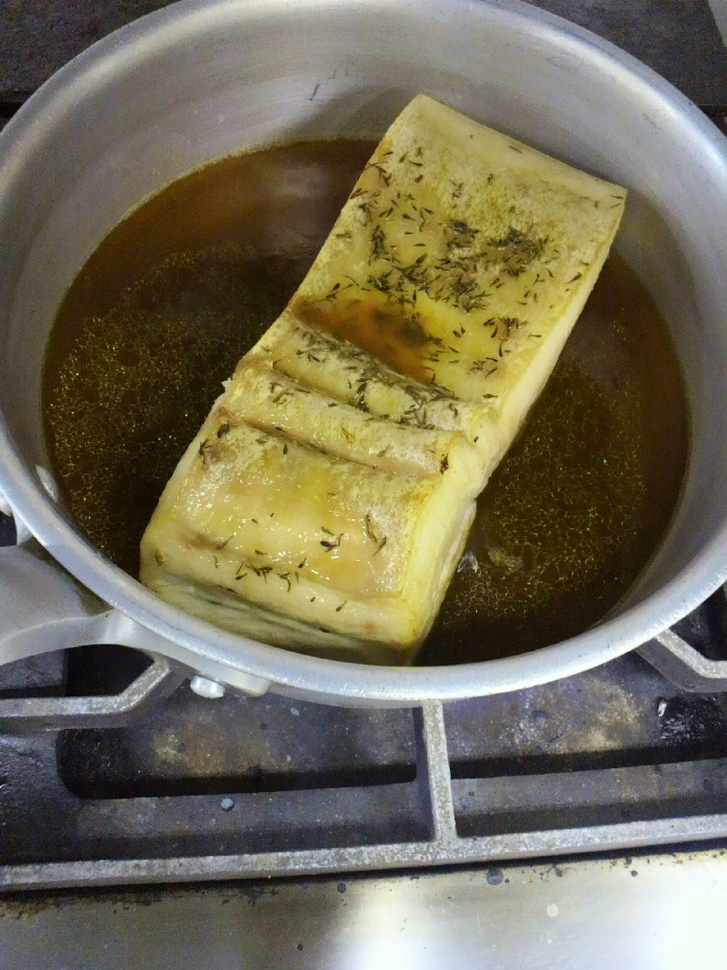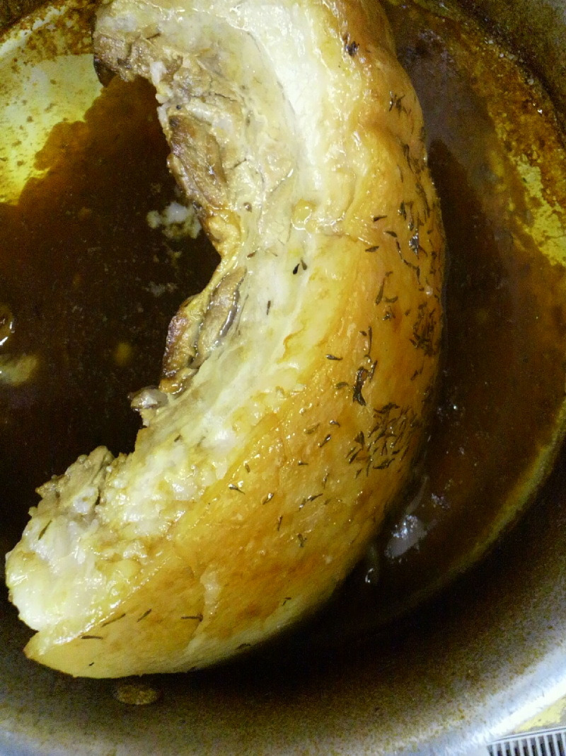 これを冷まして切り分けてから今度は皮をフライパンで焼くと