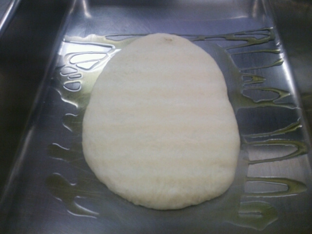 最後に塩とエキストラバージンオイルを塗り,指でへこみを作って