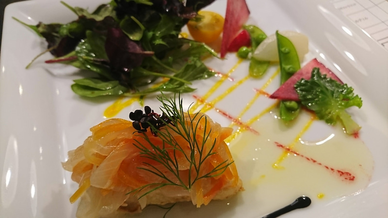 公開日2019.01.23更新日2019.03.26目で楽しむお料理こんにちは(^^)/ エスポワールでは、生ハムカッティングサービスがある料理があります 前菜で一緒に提供することが多いのですが、今回はSコース&Cコース の前菜で用意しています! 白身魚のエスカベッシュ 野菜と白身魚をマリネした料理です 生ハムとサラダを一緒に召し上がっていただくことで、普段味わえない味を楽しんでいただけると思います! 野菜も有機野菜で、生野菜&焼き野菜どちらもとっても人気です! お子さんの野菜嫌いも治っちゃうくらい美味しいんです♪ 前の記事次の記事エスポワールではウエディングサービスのほか、レストランなど一般の方向けのサービスを多数ご用意しています。また、フリーマーケットなどのイベントも開催しております。エスポワールをLINEに友達追加でレストランクーポンをGET!!各SNSでもエスポワールの日常を発信しています。InstagramFacebookXTikTok