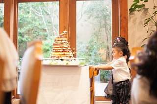 上手に新郎新婦の元へウエディングケーキを運んでくれました。