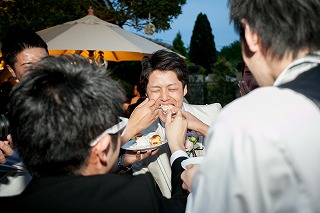 ウエディングケーキをおふたりからサービスする予定でしたがおふたりの前にはお写真待ちの行列が・・・