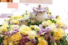 会場のお花は主人公ベルのドレスをイメージした黄色と『美女と野獣』のイメージカラーのパープル