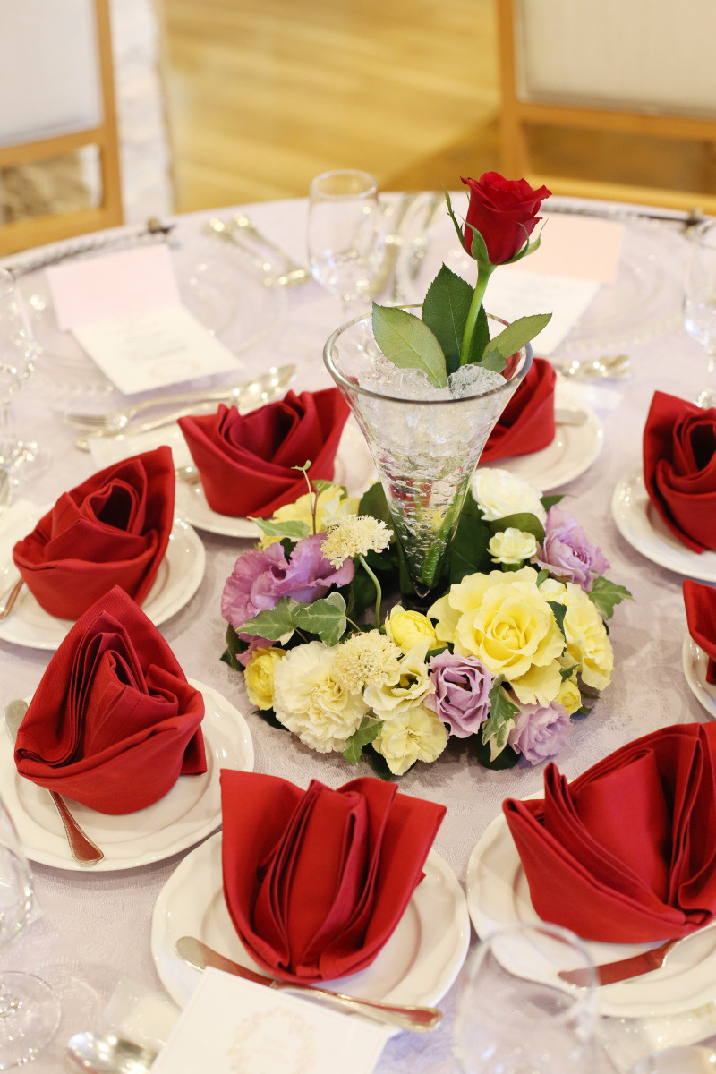 今回は会場装飾以外でもこの「赤いバラ」は何度も登場するんですよ