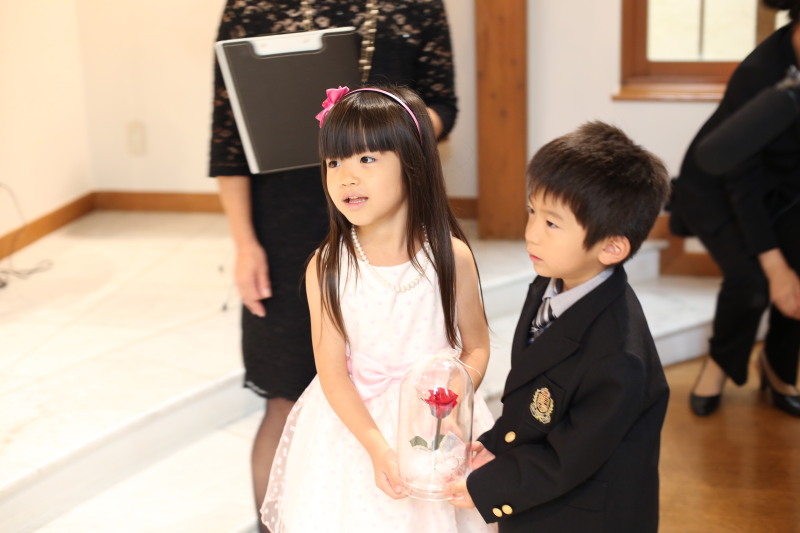 そして、新郎新婦が交換する指輪を可愛らしいお子様ゲストに運んでもらったのですが