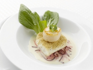 「活〆真鯛とフレッシュ帆立のさわやかなクリームソース」