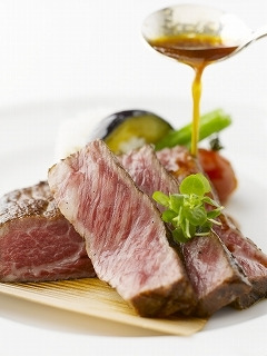 霜降りのグリルした和牛に醤油ベースのゆずソースをかけて召し上がる