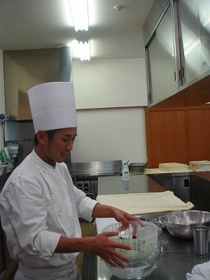 お客様にご提供する前にチェックするのが 小林シェフのお仕事です