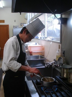 美味しいお料理の為、いつも真剣な料理長です♪おんぷ♪