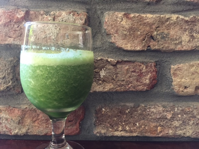 只今レストランにて『ほうれん草、バナナ、リンゴ』を使ったグリーンスムージーを好評販売中です♪