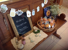 写真のバスケットに詰めてあるお菓子はゲストへのプチギフトなんですよ♪