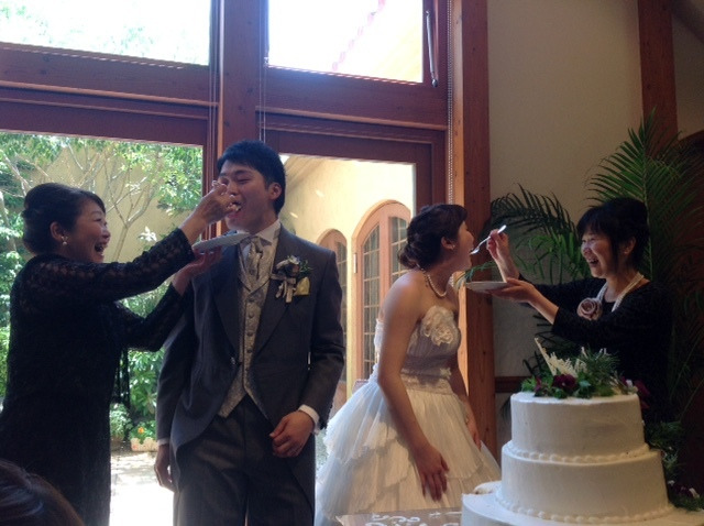 マザーズバイトとは新郎新婦それぞれのお母様からケーキを食べさせてもらう演出で、生まれたとき一番最初に食事を食べさせてくれたお母様から、最後に食べさせてもらう愛情たっぷりの食事という意味です。