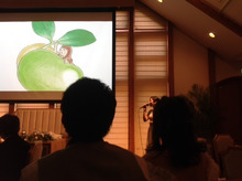 お二人のために作成した手書きの絵を繋ぎ合わせたムービーと、ご友人が作詞作曲された歌のご披露をしていただきました。とってもクオリティーが高く、力強い歌声とお二人を主人公にしたアニメーションに会場は一気に引き込まれ、ご新婦様の目には涙が...