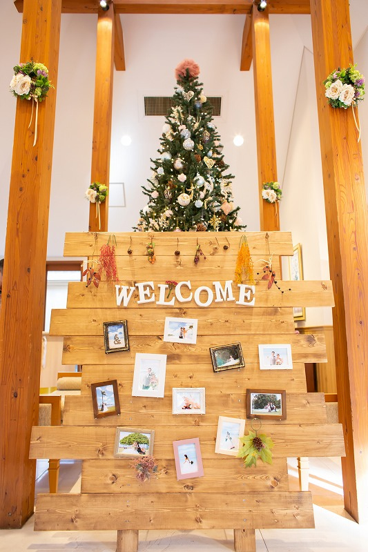 こちらの看板なんと建築関係のお仕事をされているご新郎様の手作り