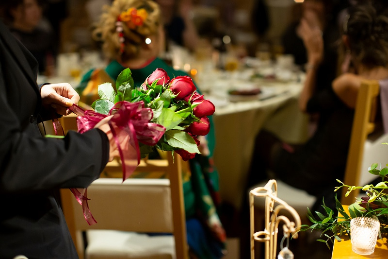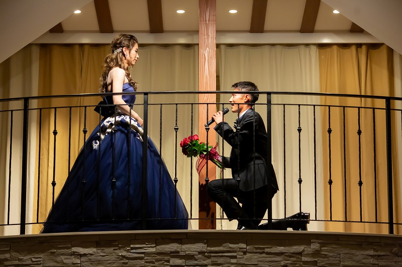 赤い100本のバラと共にプロポーズを受けたと伺った私はパーティーでも再現してもらっちゃいましょう!とブーケブートニアの儀式を提案