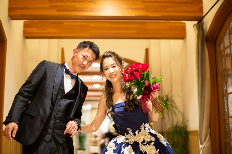 ご新婦様の選ばれたカラードレスはネイビー![]()