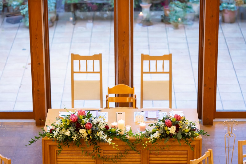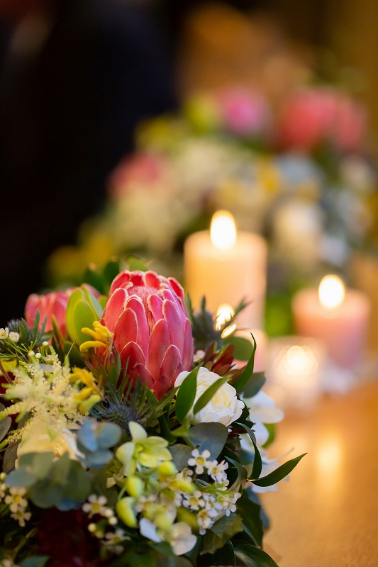 暖かい地方で咲くキングプロテアというお花を使用![]()
