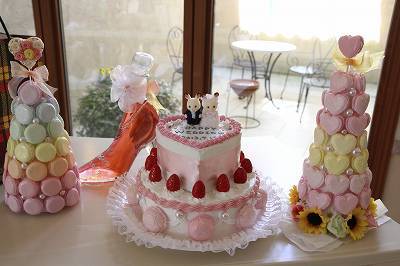 受付にはご友人が作ってくれたマカロンタワーやボトルオブジェ