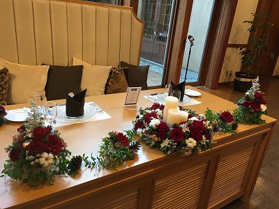 ゲストテーブルはかわいい小さなクリスマスツリー!