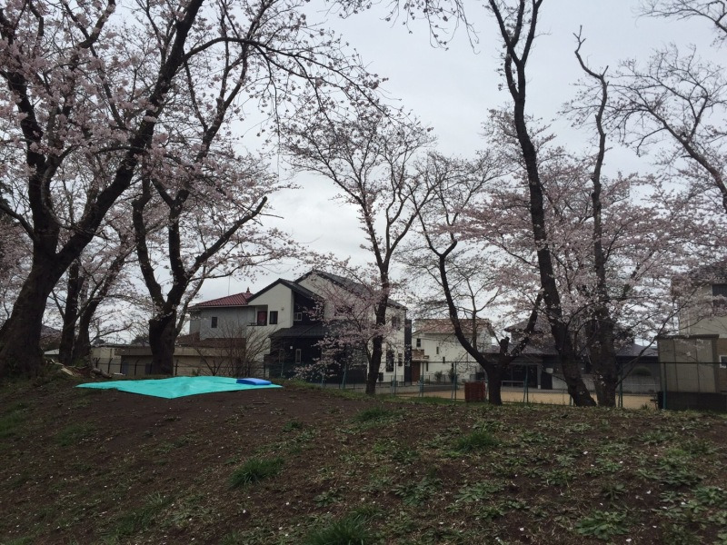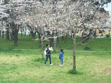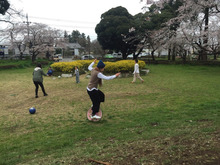 お昼前から幹事さんたちは桜の木の下で場所取り♪