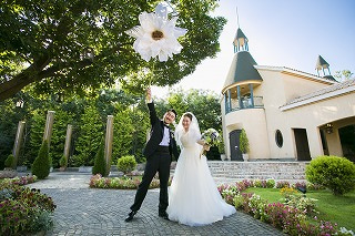 お花の大きさを活かして、お2人がおとぎ話の世界に