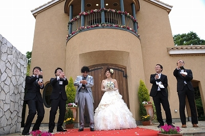 まずご新郎様おひとりで入場 ここでご新郎様お父様へサプライズ