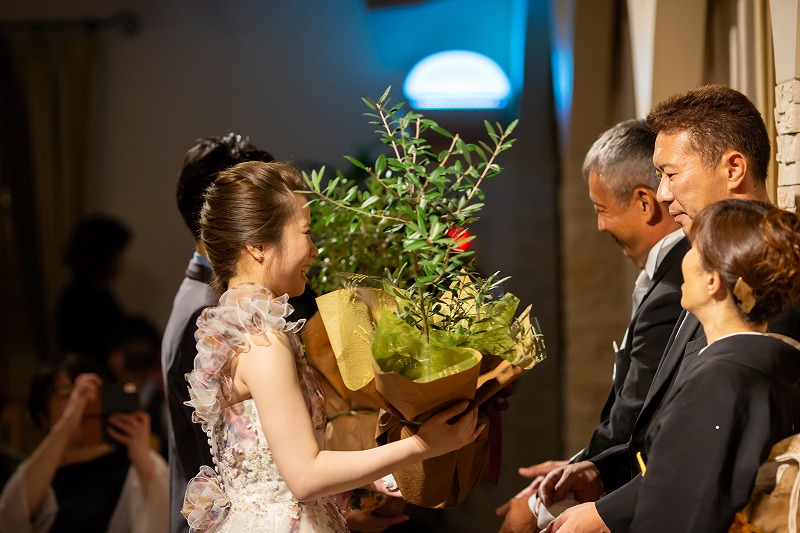 親御様へ感謝の花束贈呈はオリーブの苗木をプレゼント