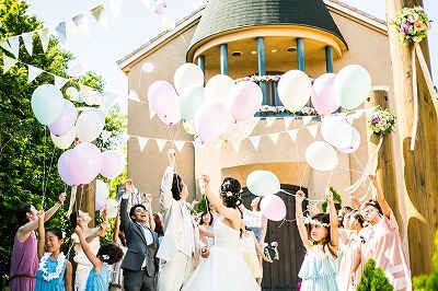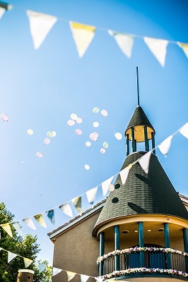 お二人とゲストの幸せを願い一斉に大空に放ちます。