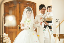 挙式ではお子様のお手伝いによるフラワーボーイでの入場