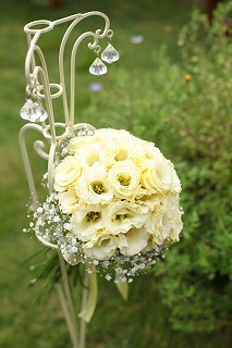 ガーデンは人前式のためシンボルツリーにホワイト、グリーンのボール花や