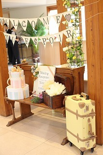 ガーランドやイエローのスーツケース、オリジナルのウェルカムボード