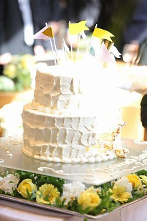 その後ろのタワーにはもちろんイエロー、ホワイト、グリーンのお花で彩られ