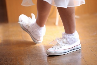 パンツの丈の長さやイエローの蝶ネクタイと靴下がアクセントに