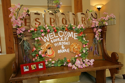 エスポワールでは駐車場から邸宅までが貸し切りになるので、大きなウェルカムボードとして