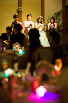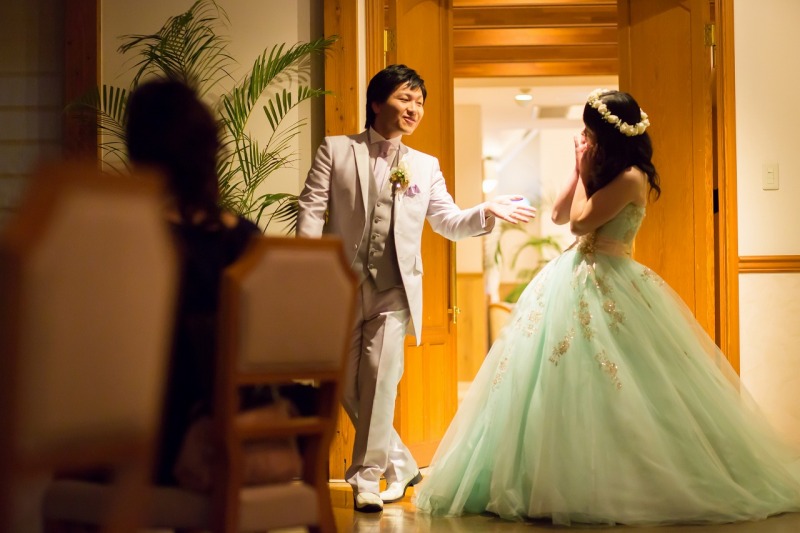 映像が暗くなると実際にお色直しした新郎新婦が入場