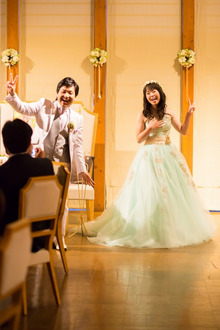 お色直しのカラードレスの色あてクイズに投票カラードレス(グリーン)