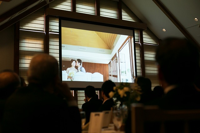 ゲストの皆様にはハワイ挙式のオープニング映像を!