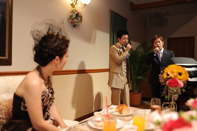 お友達がご新郎様にいきなり歌を歌ってもらう…