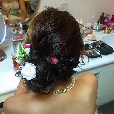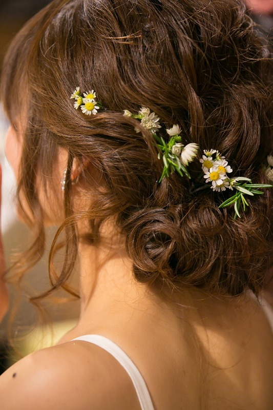 サイドにおくれ毛を入れて、今にも取れそうな簡単にまとめた雰囲気を出すことで