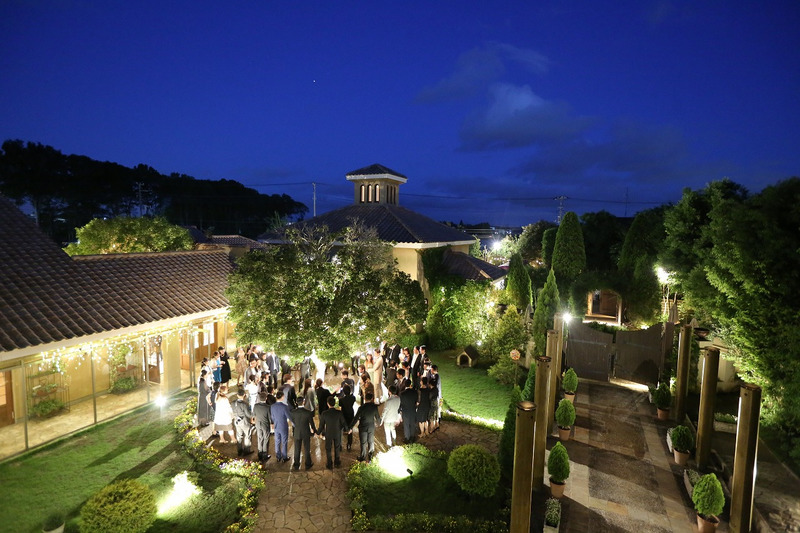ガーデンのイルミネーションの中でのファーストダンスはとても雰囲気がありますね