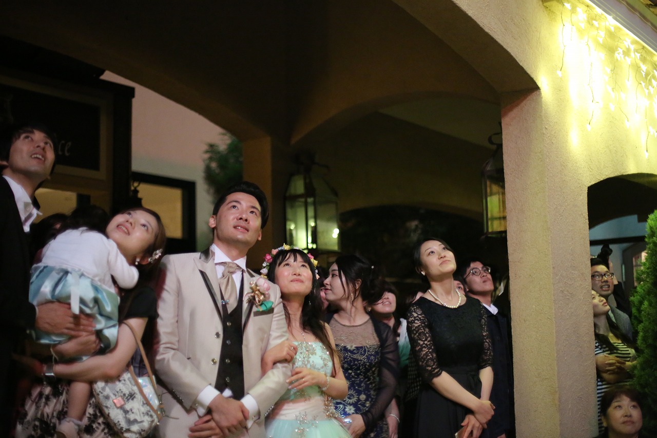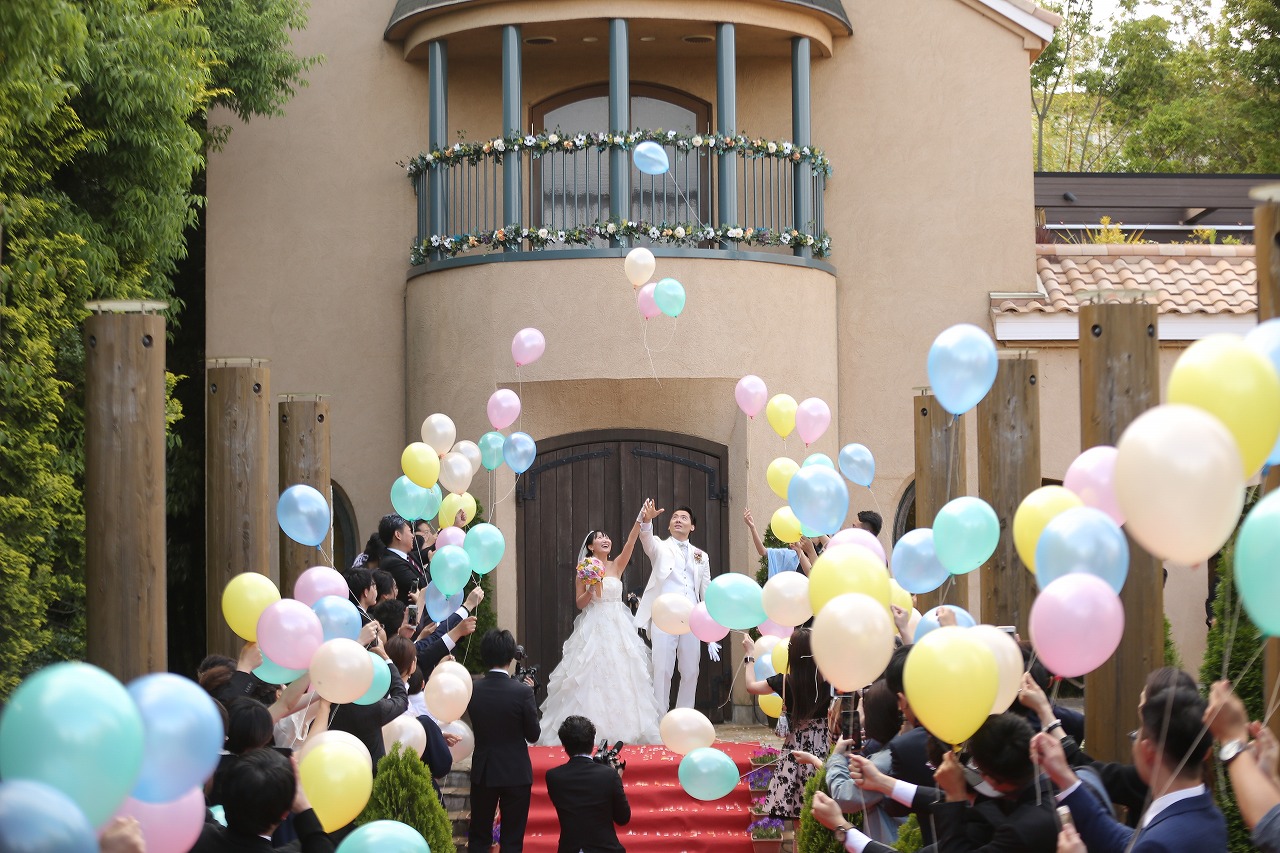 挙式後新郎新婦とゲスト一人一人に配られたバルーン