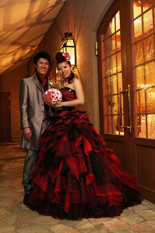 ご新郎さんも赤のスカーフとブラックのシャツで