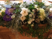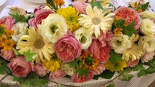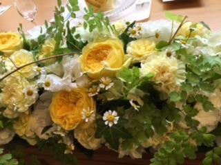 今の季節にピッタリなさわやかな、グリーンたっぷり、白×黄色のアレンジ。