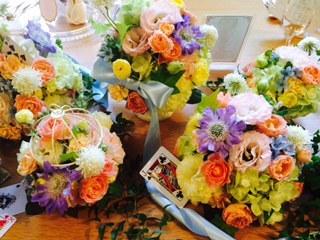 今日はたくさんのお花の色合いを会場装花でご紹介です!