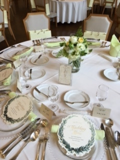 お花とナフキンの明るいグリーンの色合いに濃いグリーンクローバー
