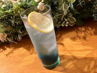 青色のシロップやビタミンカラーのレモンも入って見た目も楽しめ、