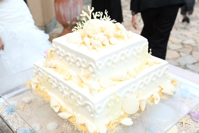 貝殻がのった、こんな可愛いデザインのウエディングケーキも作れちゃうんです!