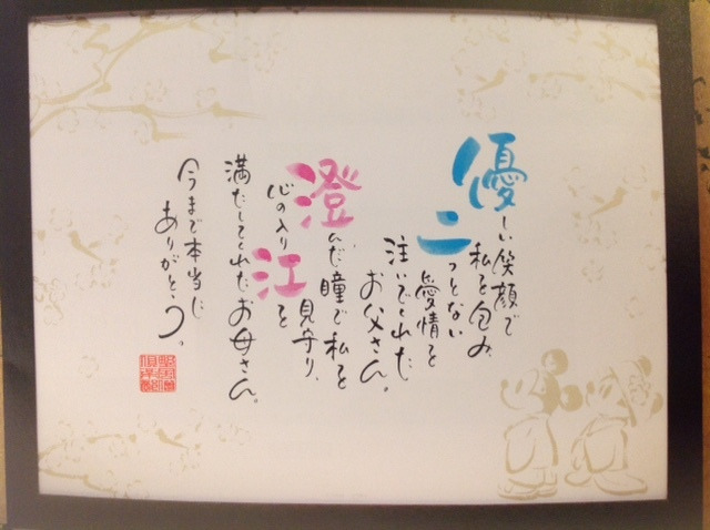 大好きなご両親のお名前にのせて感謝の気持ちを詩にしたり