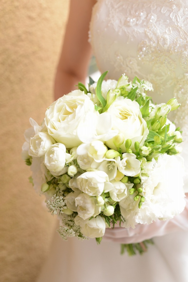 お式用は白いバラのブーケ