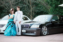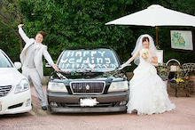 車とはウェディングドレスでもカラードレスでも一緒にお写真をカシャッ♪
