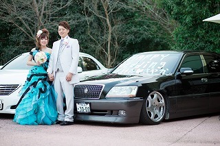 車とはウェディングドレスでもカラードレスでも一緒にお写真をカシャッ♪